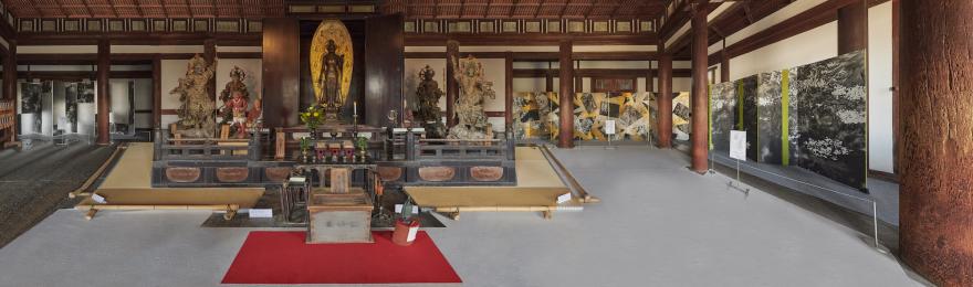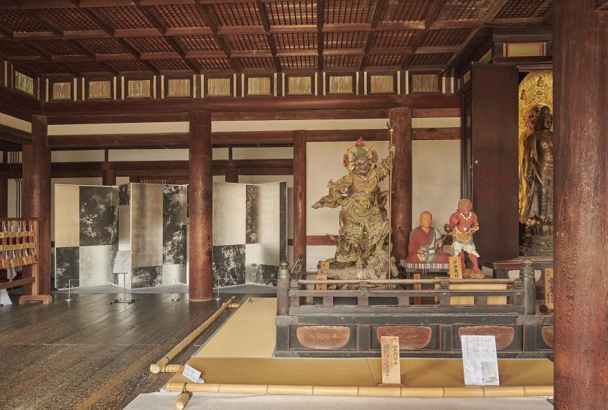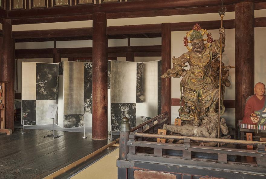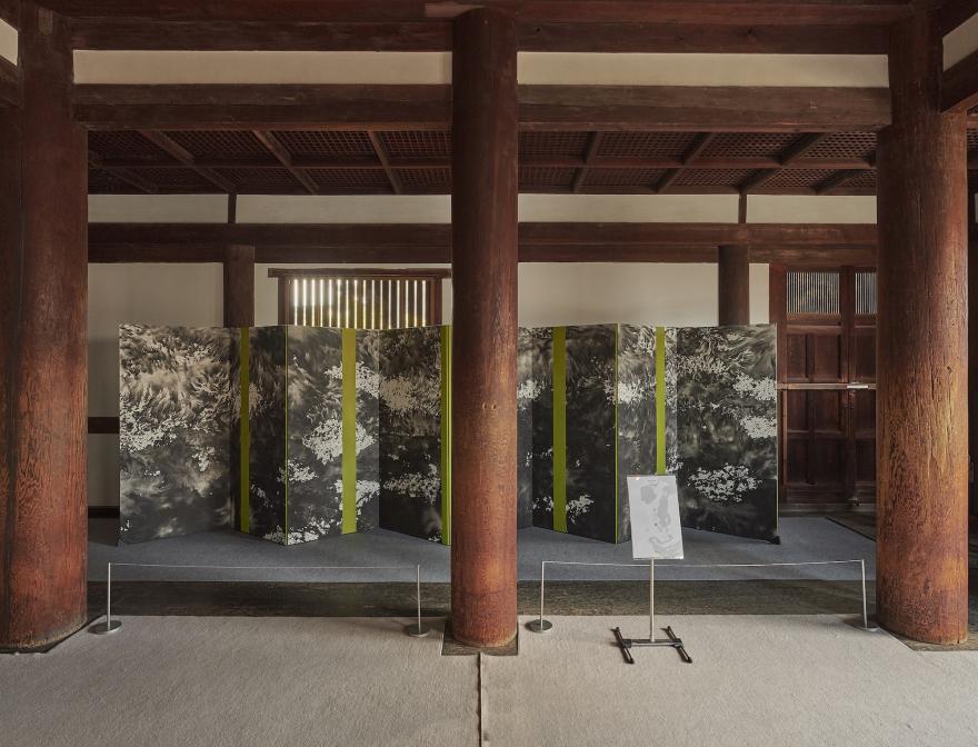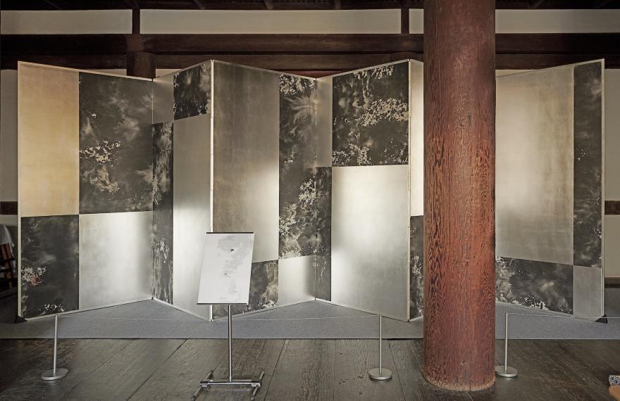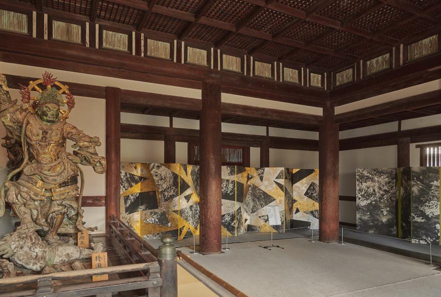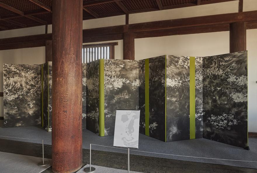 遊山翫水(ゆさんがんすい)―婁の制作は、しばしば自らの画室を囲む山や海などの美しい自然の景色に触発されています。このたびは2015年に屏風に描かれた3点の作品を、国宝薬師寺東院堂で公開いたします。